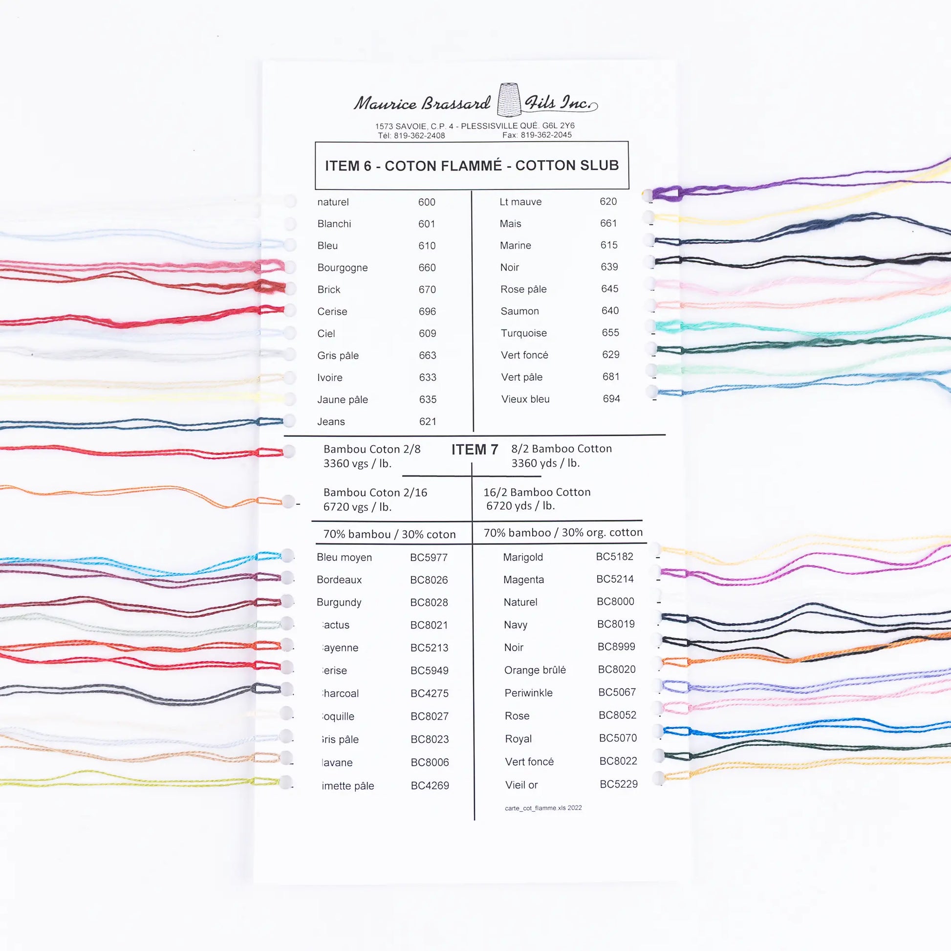 Le nuancier de fils de coton Maurice Brassard est idéal pour évaluer l'effet de couleur, la structure du fil et les propriétés du matériau.